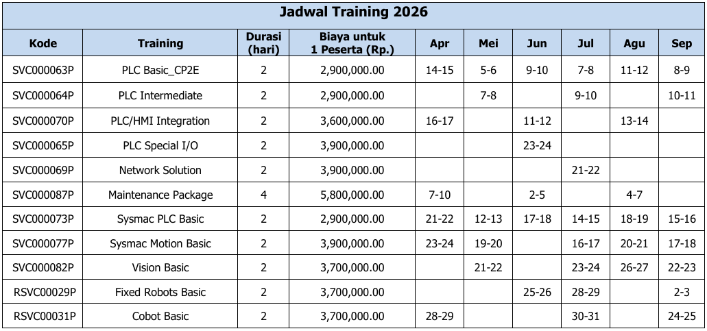 OMRON Indonesia’s training schedule for FY2026